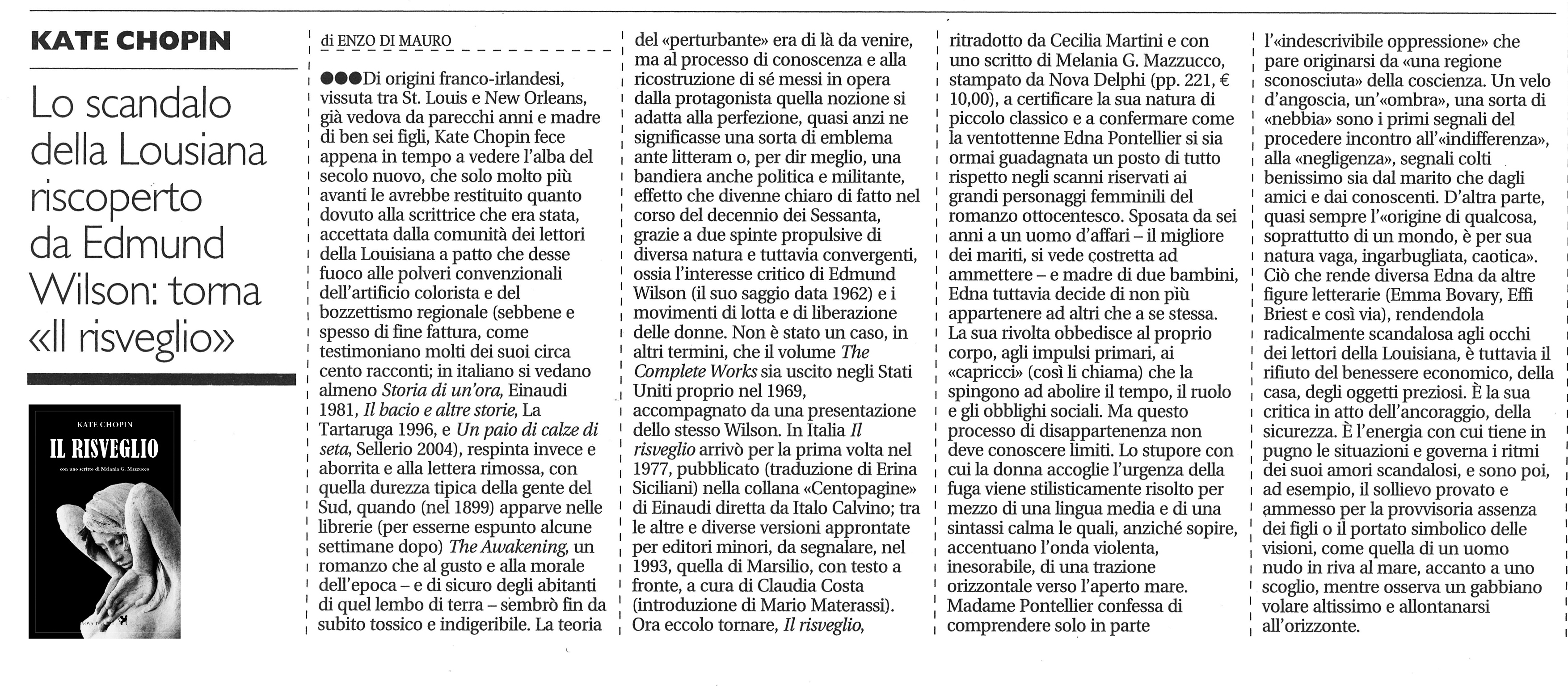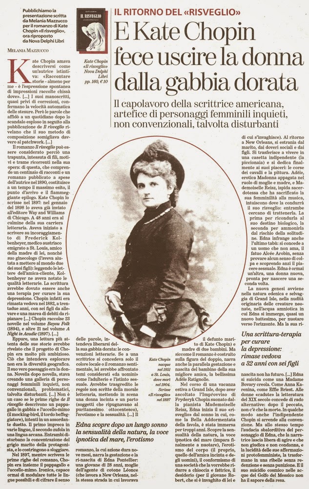 "La colpa di Kate Chopin: avere trasgredito il codice. Avere letto. Sapere. E avere detto la verità."